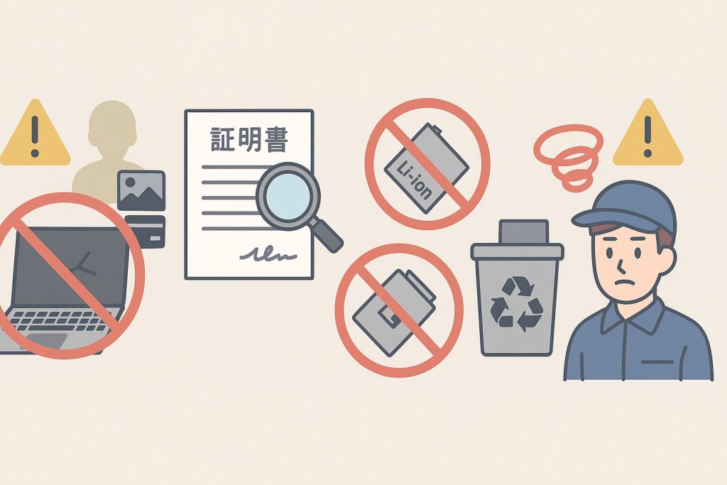 会社で使っていたPCや、法人契約していた機材を処分する場合は、**「廃棄証明書」**の提出が必要なケースもあります。