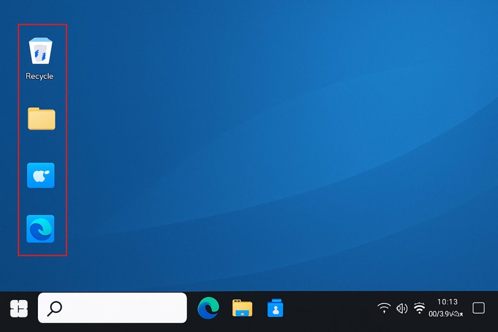 ここが、**Windowsの“作業スペース”**になります。いろんなアプリを開いたり、ファイルを探したり、パソコン操作のスタート地点です。