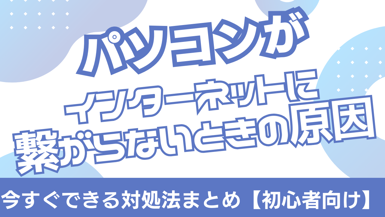 この記事では、パソコンがインターネットに繋がらない原因と、今すぐ試せる対処法を、初心者の方でもわかりやすいようにやさしく紹介していきます。Wi-Fiやルーターのトラブル、有線LANの確認方法、Windowsの設定など、順番にチェックすればOK!