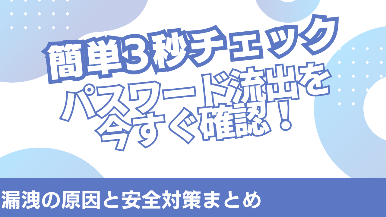 最近、「もしかしてパスワードが流出してるかも…」と不安になったことはありませんか?