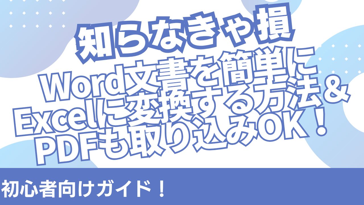 Wordで作成した文章や表をそのままExcelに移したいとき、手動でコピー&貼り付けしようとするとレイアウトが崩れてしまってうまくいかない…そんなこと、ありますよね。