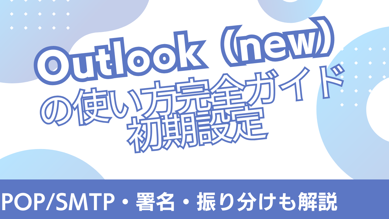 「Outlook(new)」と従来版の違いや、初期設定、POP/SMTPの入力方法、署名の作り方、振り分け設定など、よく使う機能を一つずつわかりやすく紹介していきますね!