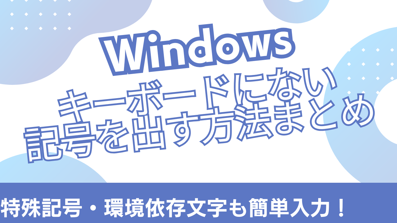 - **IMEパッドや絵文字パネル(Win+.)**を使えば、さらに幅広い記号を一覧から選択可能