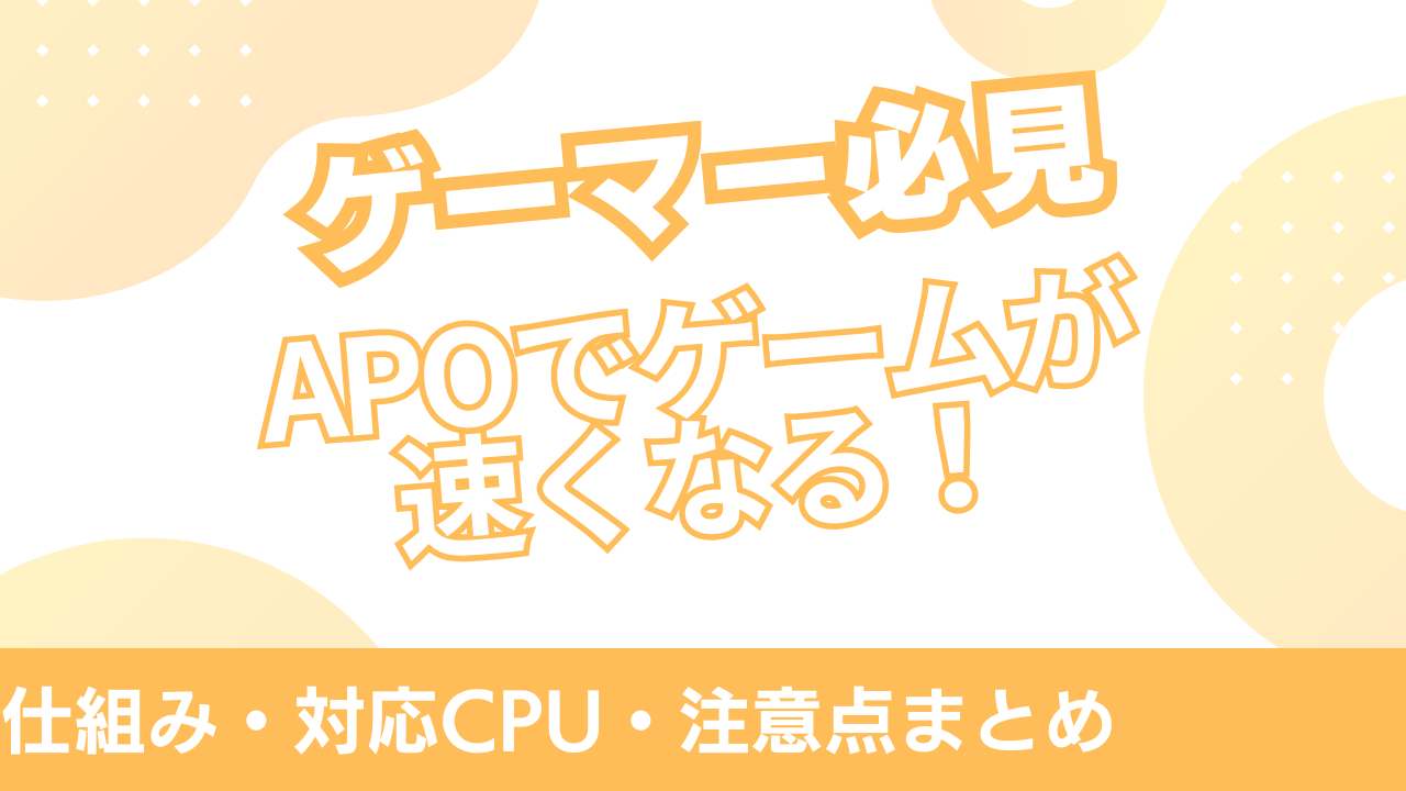 本記事では、APOの仕組みや対応CPU、導入方法、メリット・課題までをわかりやすく解説します。 「APOを有効化すると本当に快適になるの?」「自分の環境で使えるの?」と気になっている方は、ぜひ最後までチェックしてみてください!