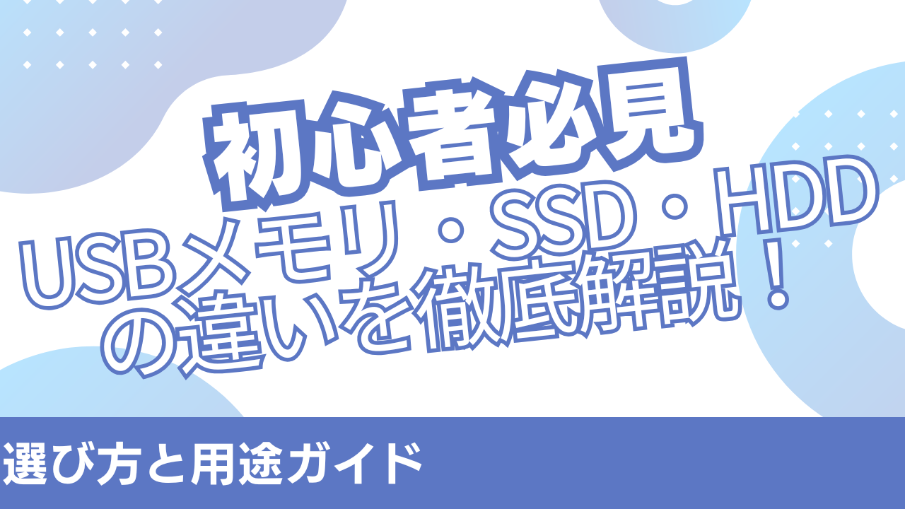 この記事では、初心者でもすぐに違いがわかるようにUSBメモリ・SSD・HDDの特徴や用途をわかりやすく解説します。これを読めば、自分にぴったりの外付けストレージを選べるようになりますよ! それでは、さっそく見ていきましょう。