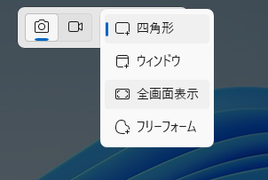 - 四角形・ウィンドウ・全画面・フリーフォームの4モードを使い分け可能