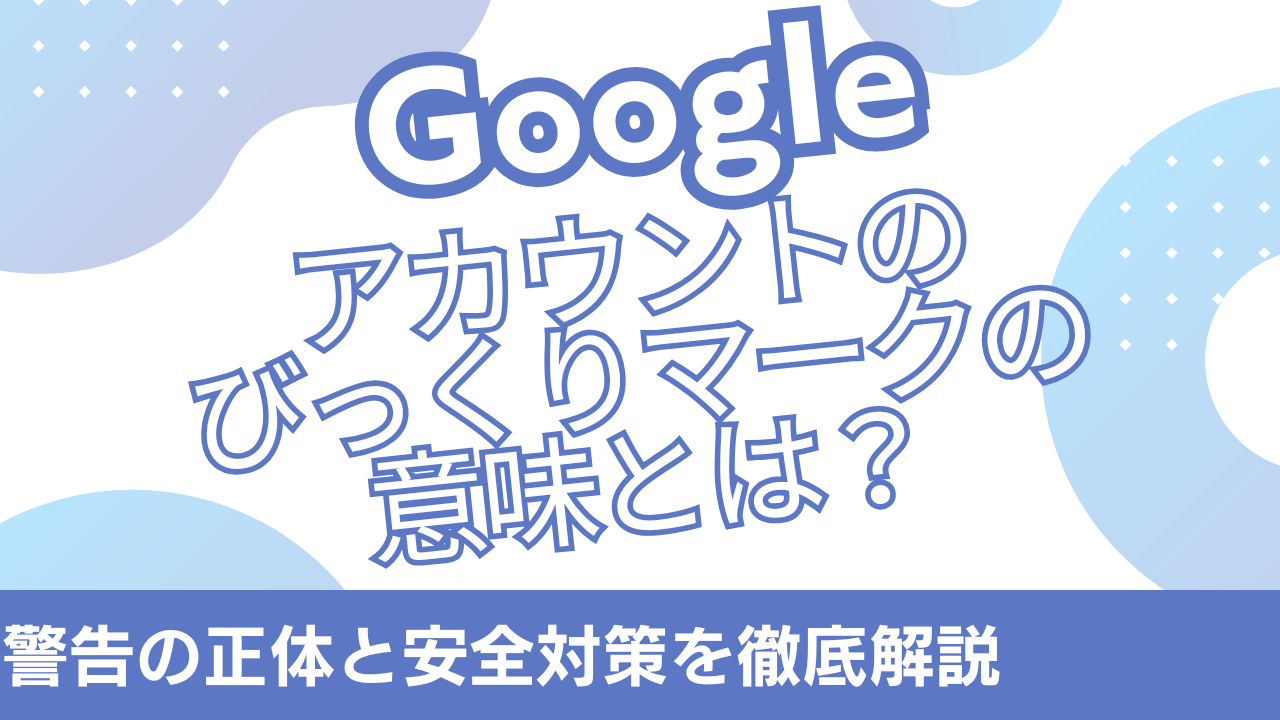 この記事では、Googleアカウントのアイコンに表示されるびっくりマーク(警告マーク)の意味と、 安全性を高めるための対策方法を詳しくご紹介しました。