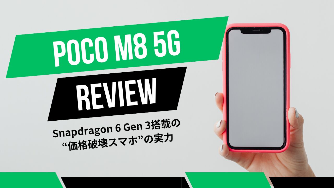 そこで注目されているのが、今回レビューする2026年1月8日に発売されたPOCO M8 5G。エントリークラスの価格帯なのに、有機EL120HzやSnapdragon 6 Gen 3など、ミドルレンジ級の機能を詰め込んだ“価格破壊スマホ”として話題になっています。
