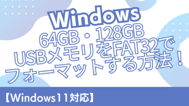 PC・スマホ関連デバイス 【Windows11対応】64GB・128GB USBメモリをFAT32でフォーマットする方法! Windows11では32GBを超えるUSBメモリをFAT32でフォーマットできません。本記事では、64GBや128GBなど大容量USBをFAT32に変換する方法を図解付きでわかりやすく解説します。カーナビや古い機器に使いたい方必見! 2025.07.21 PC・スマホ関連デバイスパソコン関連(モニター・周辺機器)